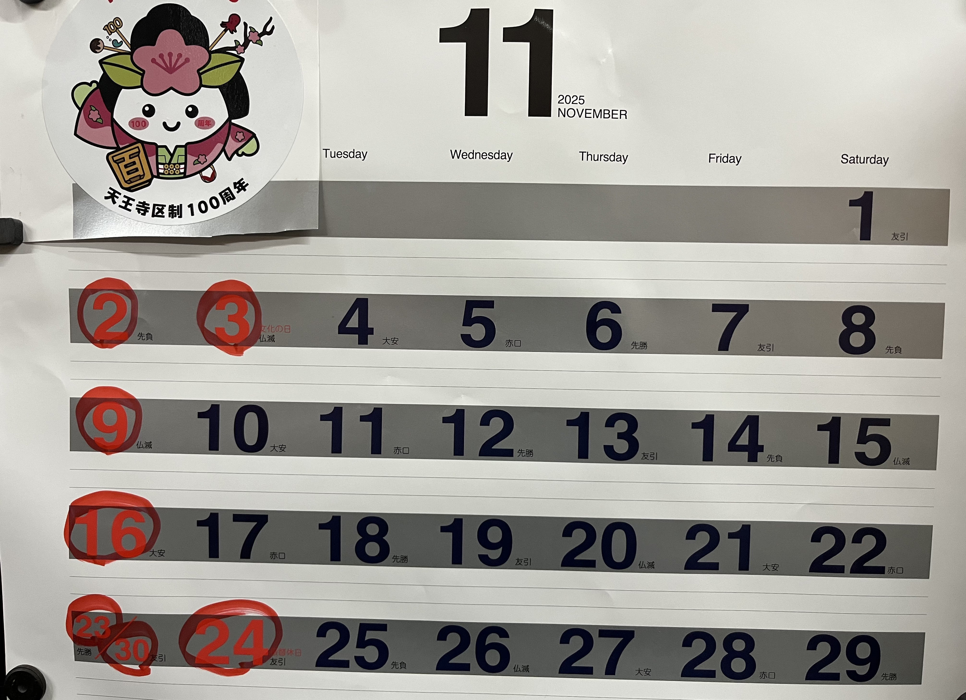 11月営業カレンダー